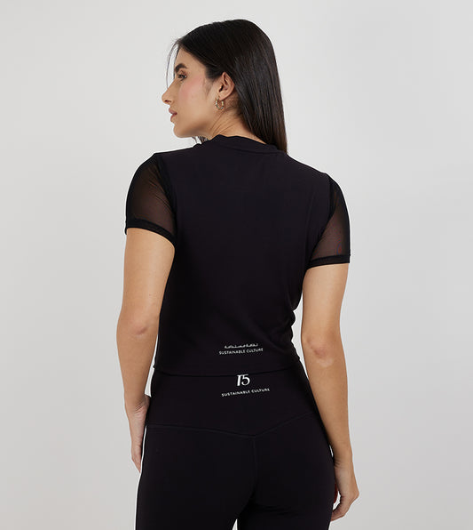 Women's CROPPED MESH SLEEVE T-SHIRT