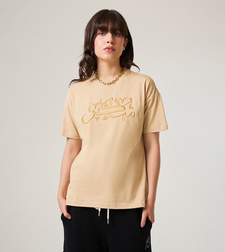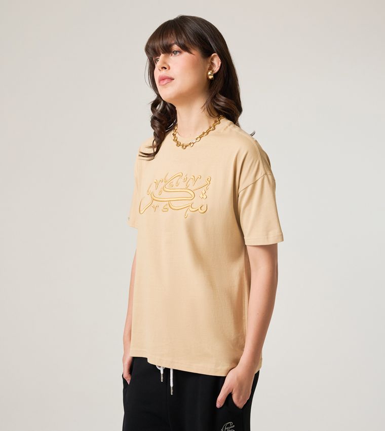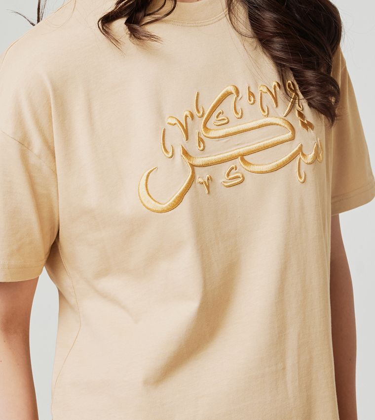 Women’s Sand T-Shirt, where contemporary style meets cultural elegance. Adorned with captivating Arabic script on the front, this tee adds a touch of sophistication to your ensemble. Crafted from 100% organic cotton jersey, it not only offers sustainability but also ensures comfort all day long. Make a statement with this unique and versatile piece for any occasion, embracing both fashion and eco-conscious choices.