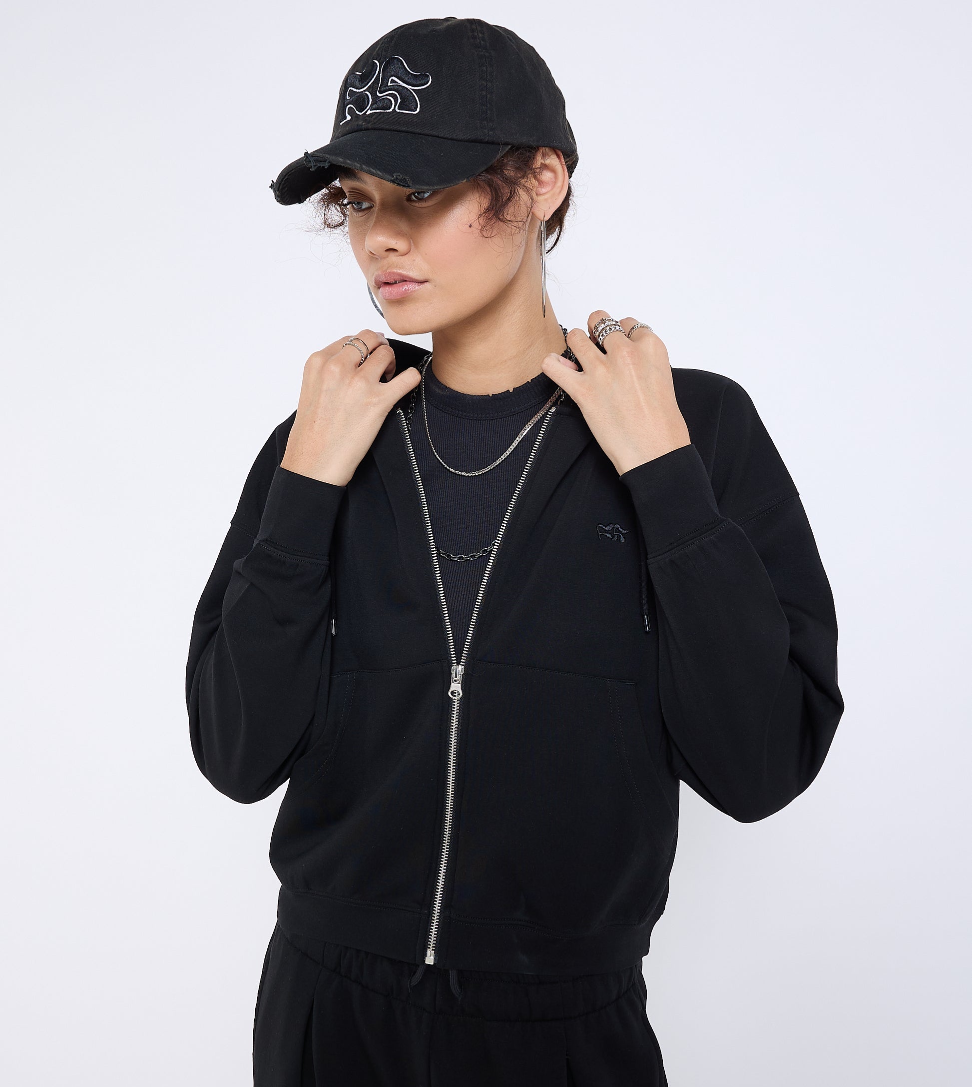 A full-zip hoodie offering easy layering and adjustable comfort, featuring a practical front pocket and an adjustable hood.